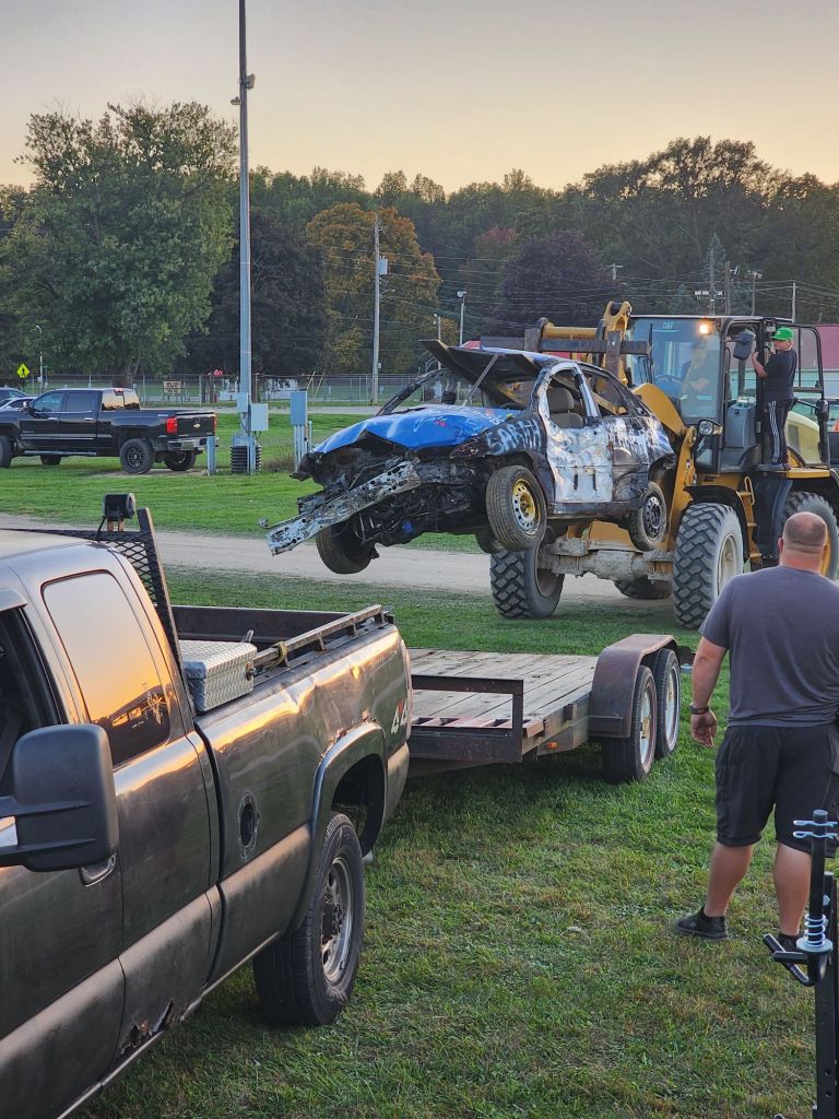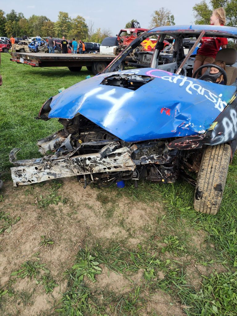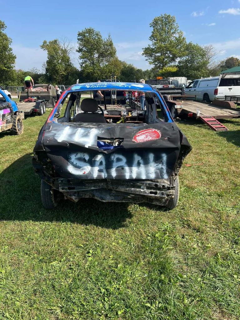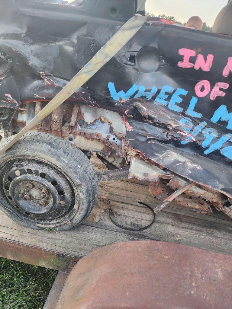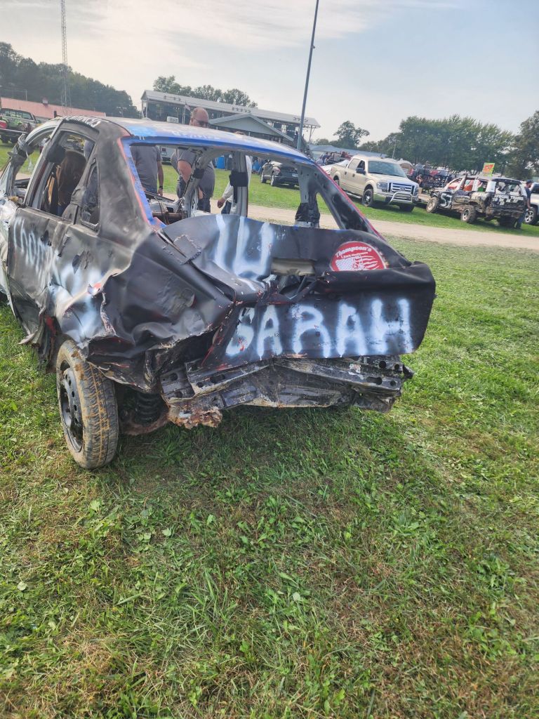 Again still not really thinking anything was going to happen. The car would end up not running, we wouldn’t have the money for registration, something, cuz that’s normally my luck anyway. Well everything worked out, and I ran in my first demolition derby. I didn’t win, I didn’t place, but I was not the first one out and I didn’t receive any major injuries or flip my car over lol.