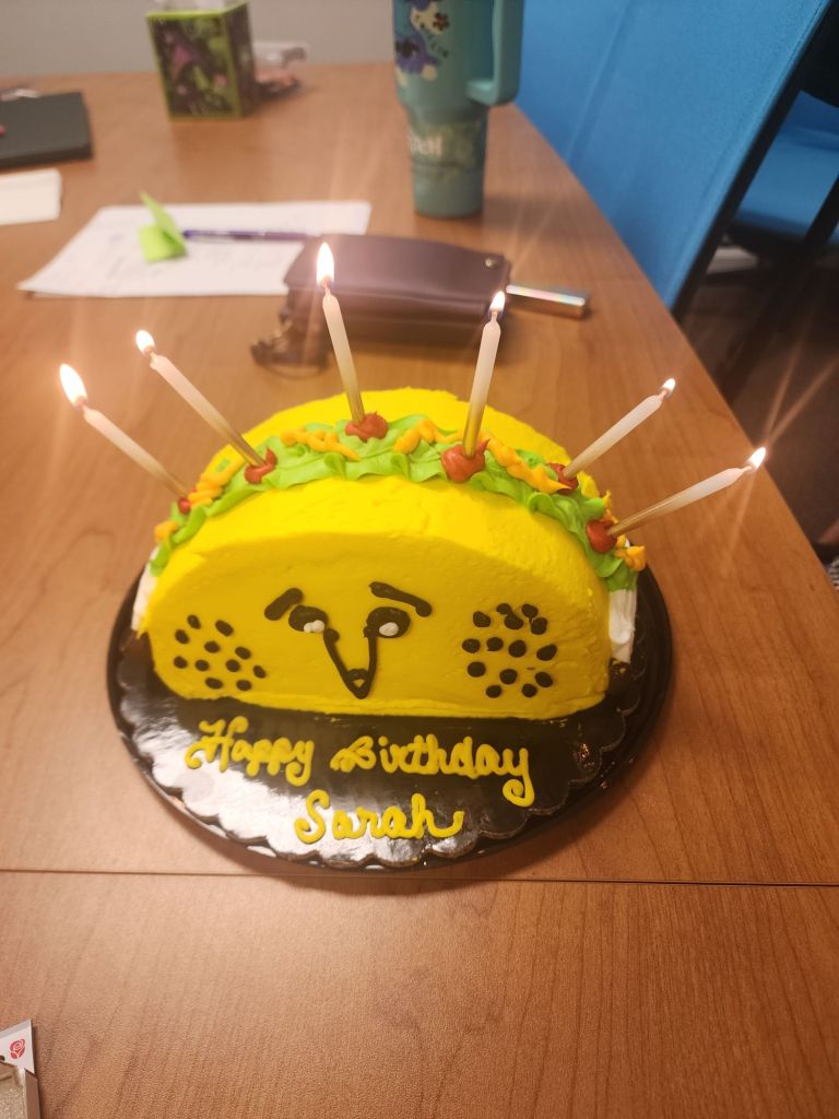 Hanging out with oldest daughter Endless Root beer floats Pics with my bestie Gift bag was so big baby girl had to get in🤣Taco cake at workI have amazing coworkers!New Watch!!