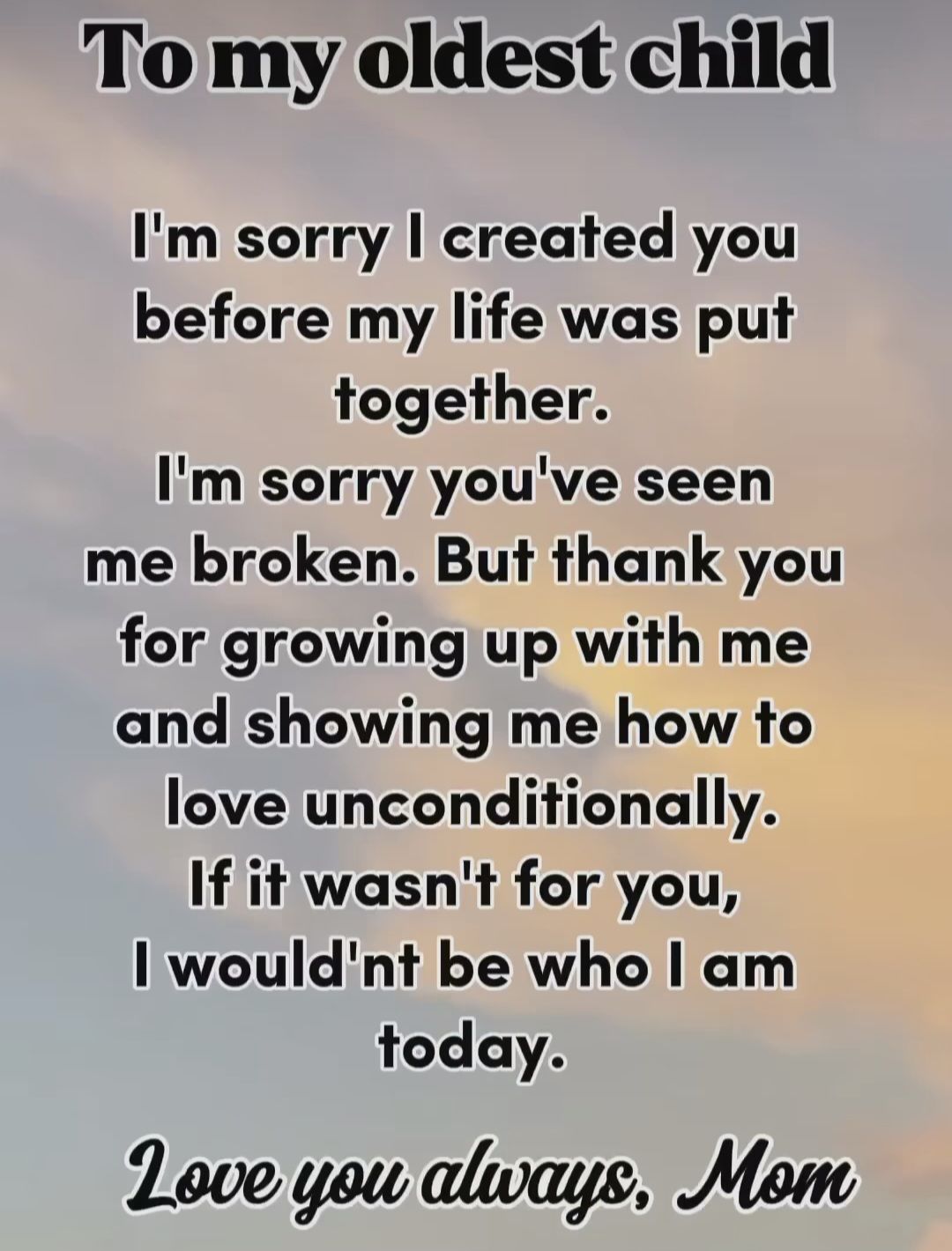 Looking back on our life together and seeing how I mother your youngest siblings, I feel like I have failed you… well, not failed, but just could have done better. I was so focused on myself that I missed the mark when it came to being a mom. I was so worried about making others happy- your dad, your mawmaw, your grami… that I didn’t focus on your happiness as much as I should have. I should have spent more time with YOU. Had more one-on-one time with YOU. You were a strong-willed child and at times, I didn’t know how to parent. I did the best I could with what I knew, what I was being told, and what I thought was best. I often wonder if it was right.